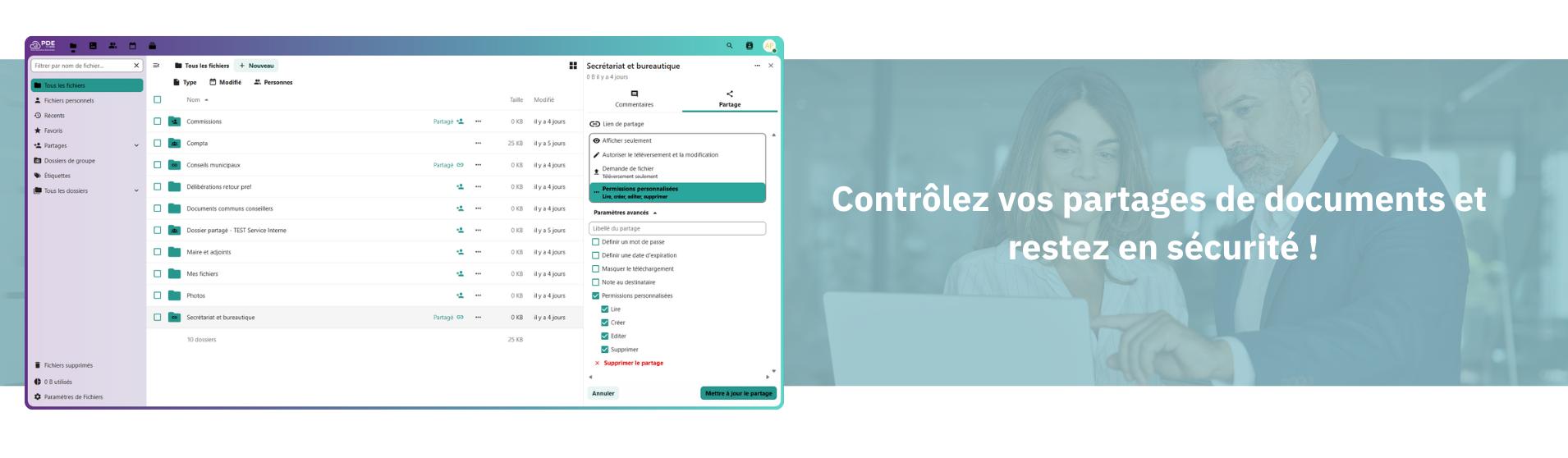 Partagez facilement vos documents avec prestataires, partenaires ou citoyens grâce à des liens sécurisés et contrôlés.