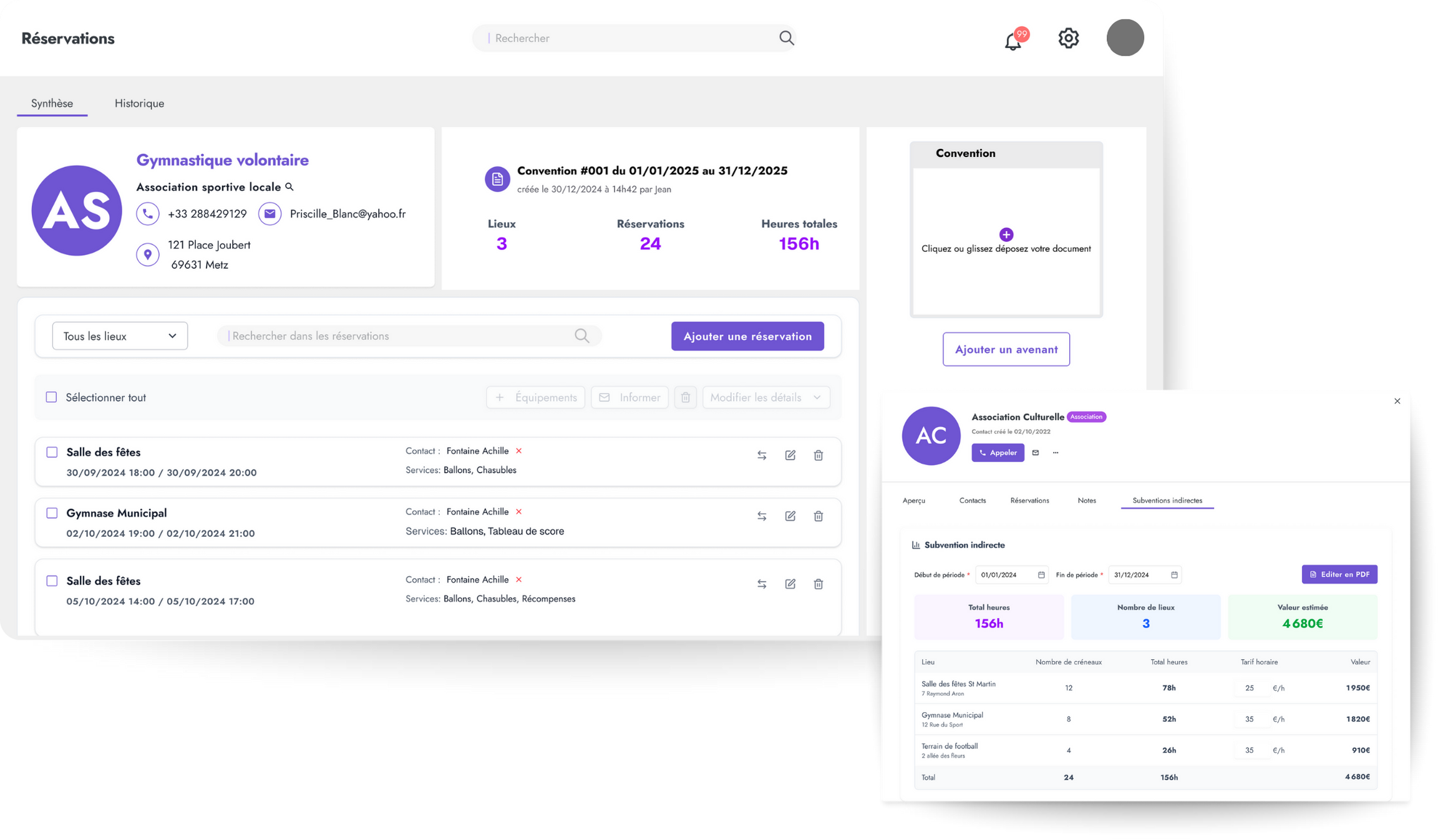 - Un seul outil pour toutes vos ressources : salles, gymnases, gîtes, équipements et véhicules