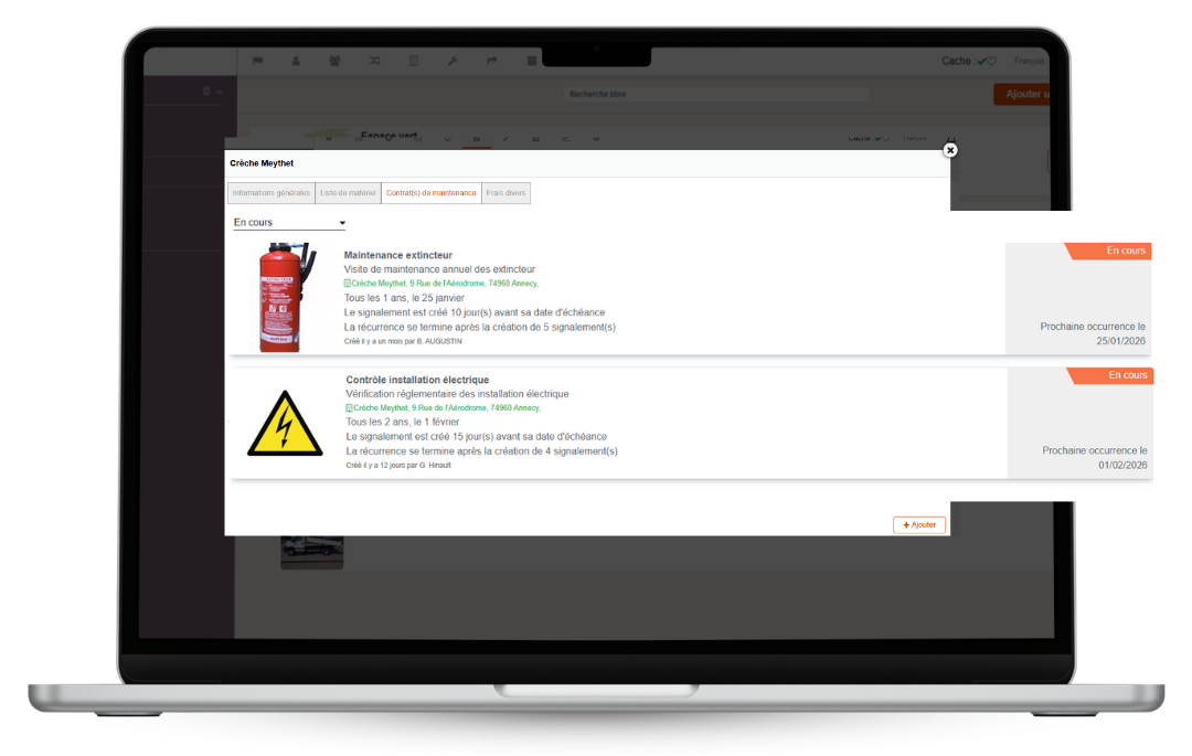Chaque contrat est relié à son bâtiment, équipement ou véhicule, ce qui permet :