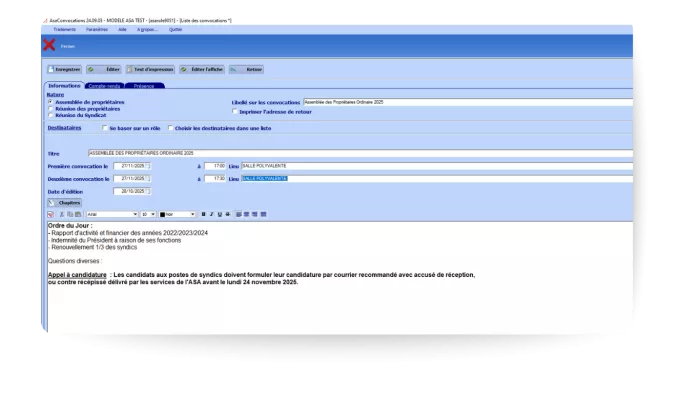 Préparez rapidement vos assemblées : convocations, documents et liste d’émargement.