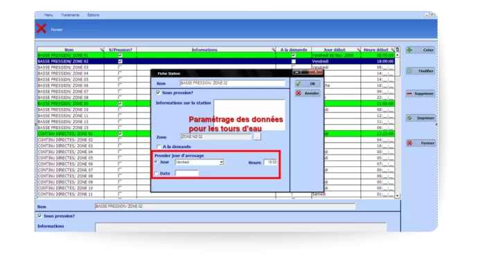 Planifiez et calculez les tours d’eau : stations, campagnes et calendrier d’arrosage.