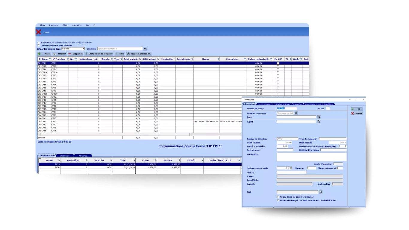 Tenez à jour le périmètre, produisez vos rôles/avis et préparez vos assemblées dans un seul et même outil. Selon votre besoin, activez les options réseau : bornes, consommations et tours d’eau.