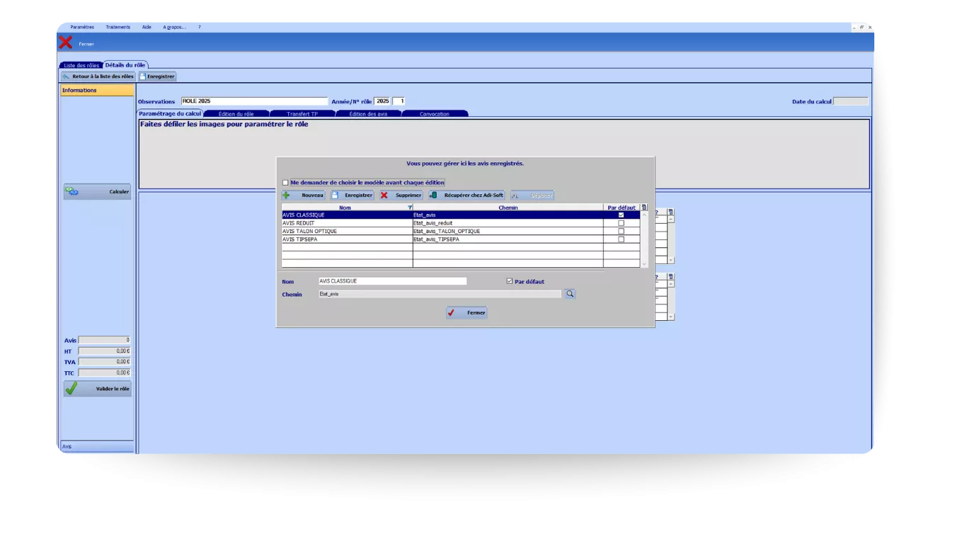 Calculez, éditez et archivez vos rôles/avis avec un paramétrage adapté à votre association.